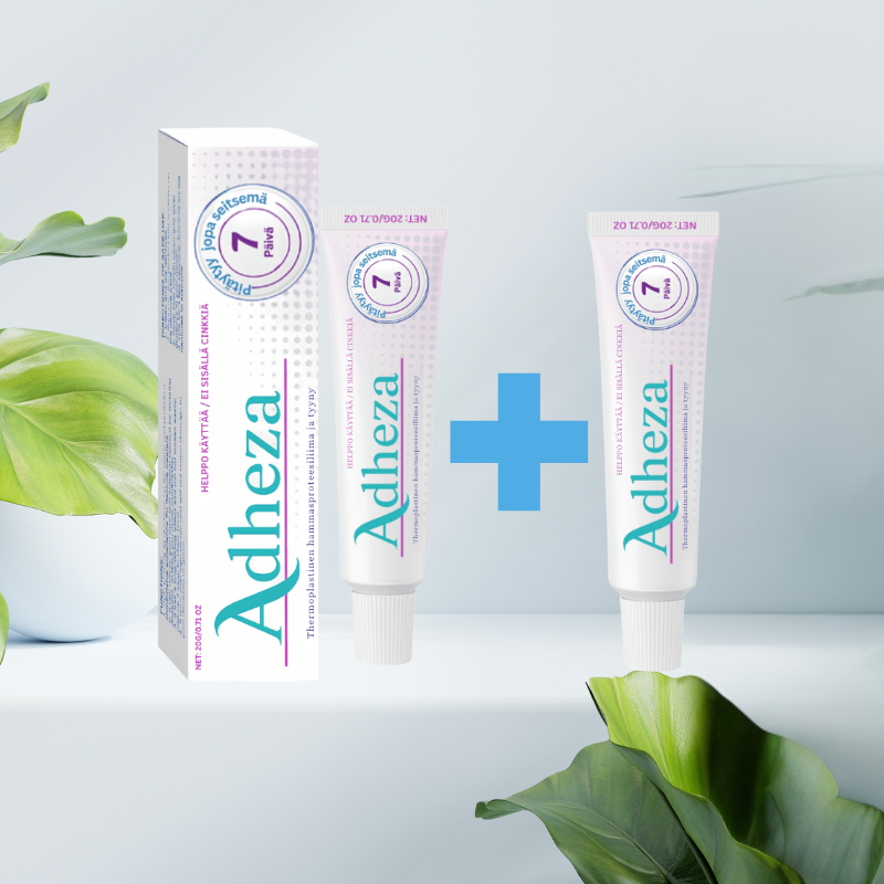 Adheza™ er den perfekte løsning til at sikre, at dine tandproteser sidder fast hele dagen – og det i op til 4 dage! Denne avancerede termoplastiske hæftemiddel er designet til at give dig en komfortabel og sikker pasform, der gør det muligt at spise, tale og smile med selvsikkerhed. Takket være sin innovative PVA-baserede formel er Adheza™ både biokompatibel og sikker, hvilket betyder, at du kan bruge den dagligt uden bekymringer.